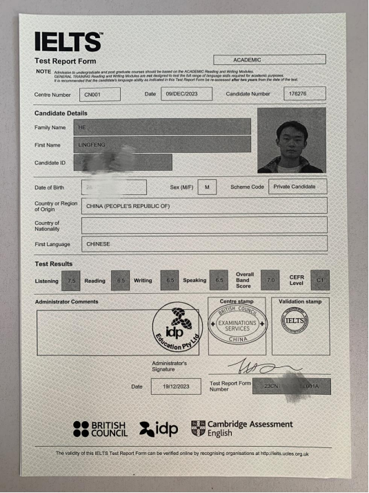 22号当天,何同学双喜临门,收获自己首份offer的同时,雅思考试也获得了总分7.0的优异成绩。希望何同学再接再厉,再创辉煌,静待更多海外名校递来的橄榄枝。
